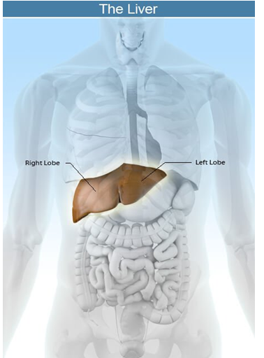Picture of the liver and where it is located in the abdomen